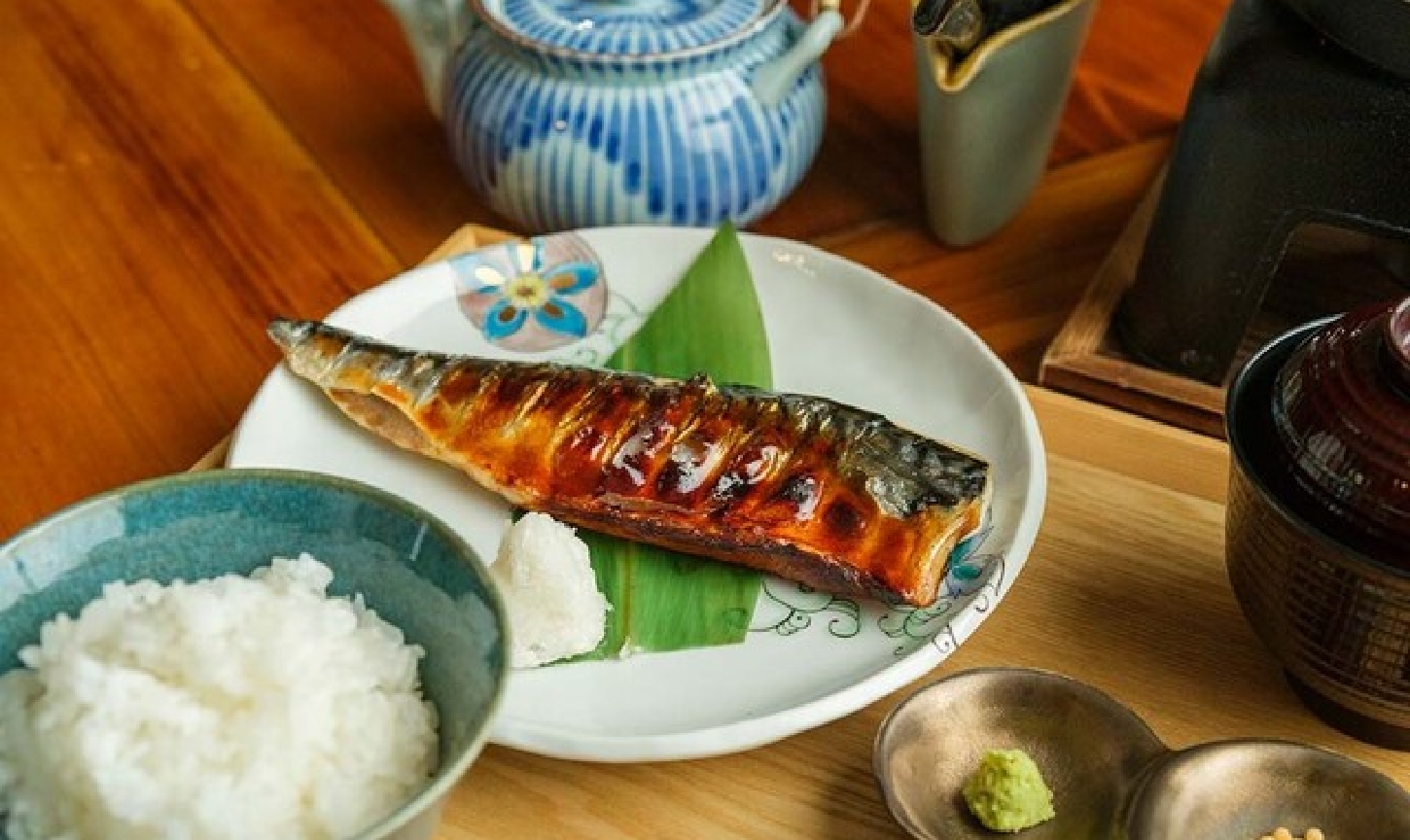 朝は羽釜で炊いた「ひとり ひと釜」の魚沼産コシヒカリ炭火で焼いた自慢の焼き魚定食を。